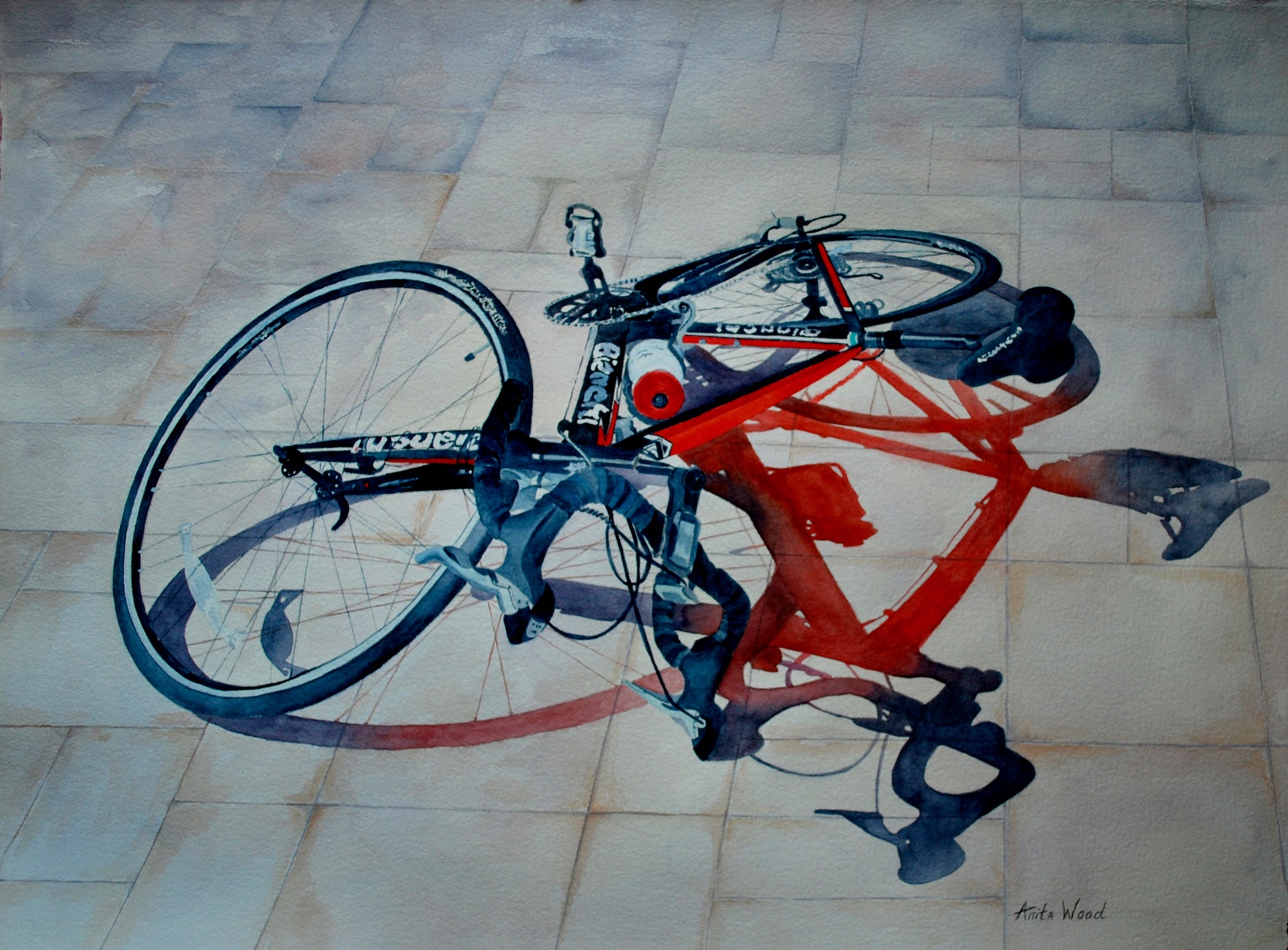 My husband had just purchased this beautiful red and black Bianca Racer. He had placed it on the driveway for just a moment when I noticed the amazing light effect. The painting and the cycle are a treasure.