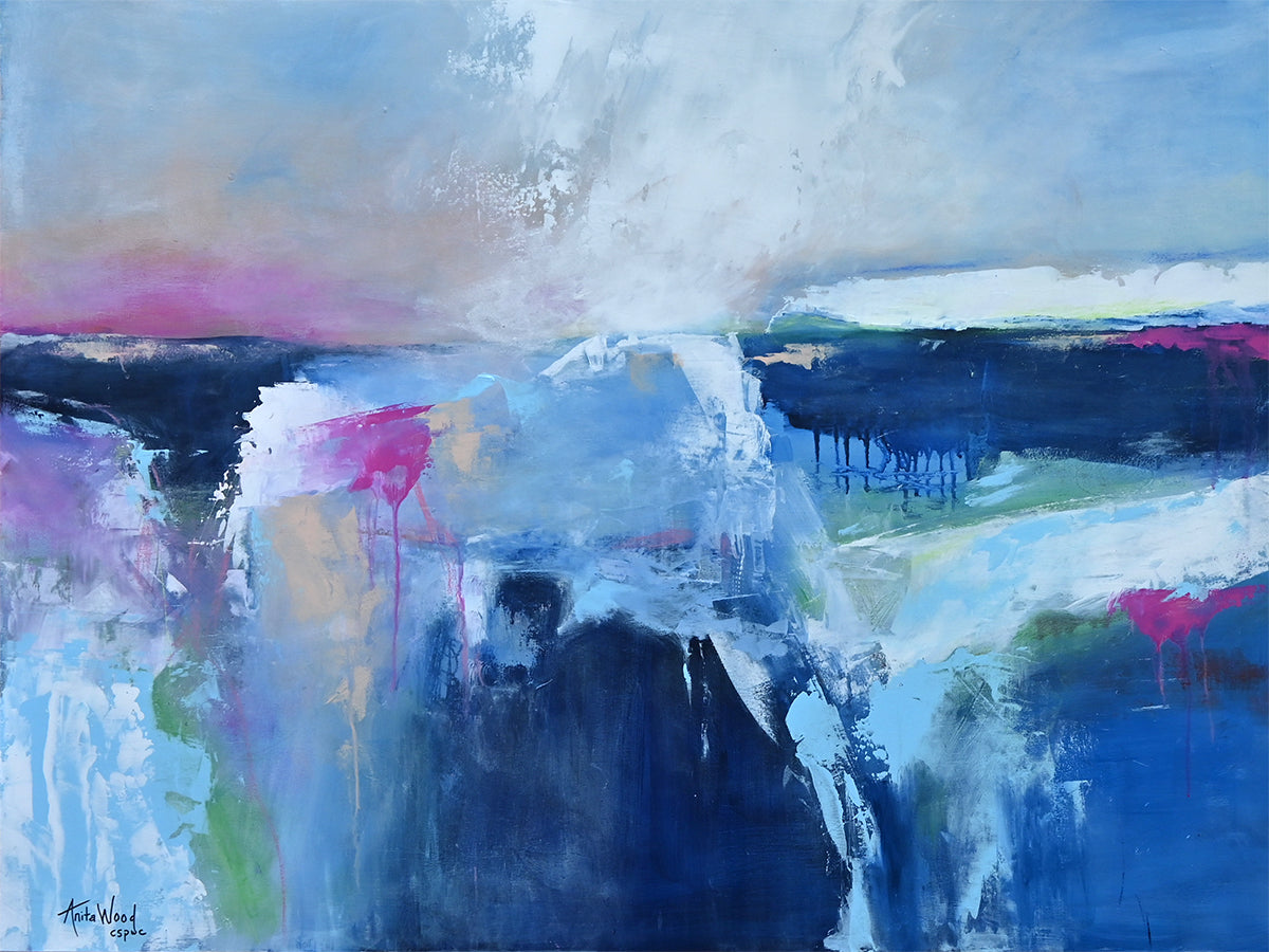 Acrylic 40"w x 30"h x 1.5" gallery cradled panel.
